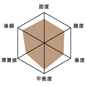 爪果香氣明顯,高甜度,紮實的醇厚度,具有優異的梅果香氣,使口感更加乾淨細膩。